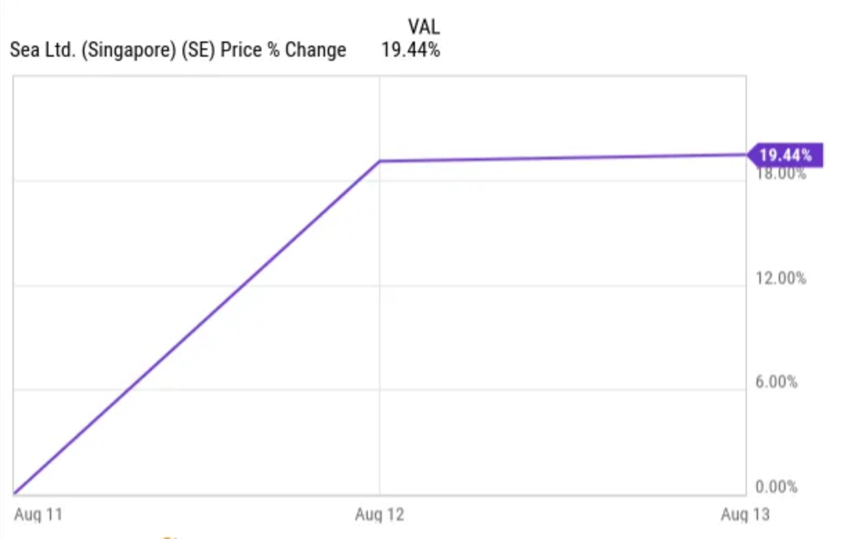 SE reported its Q2 earnings on August 11, and the stock jumped 19%.