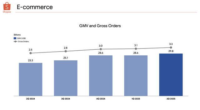 Shopee’s gross merchandise volume (the dollar amount of all goods sold on the platform) in Q2 2025 grew 28.2% year over year to $29.8 billion.