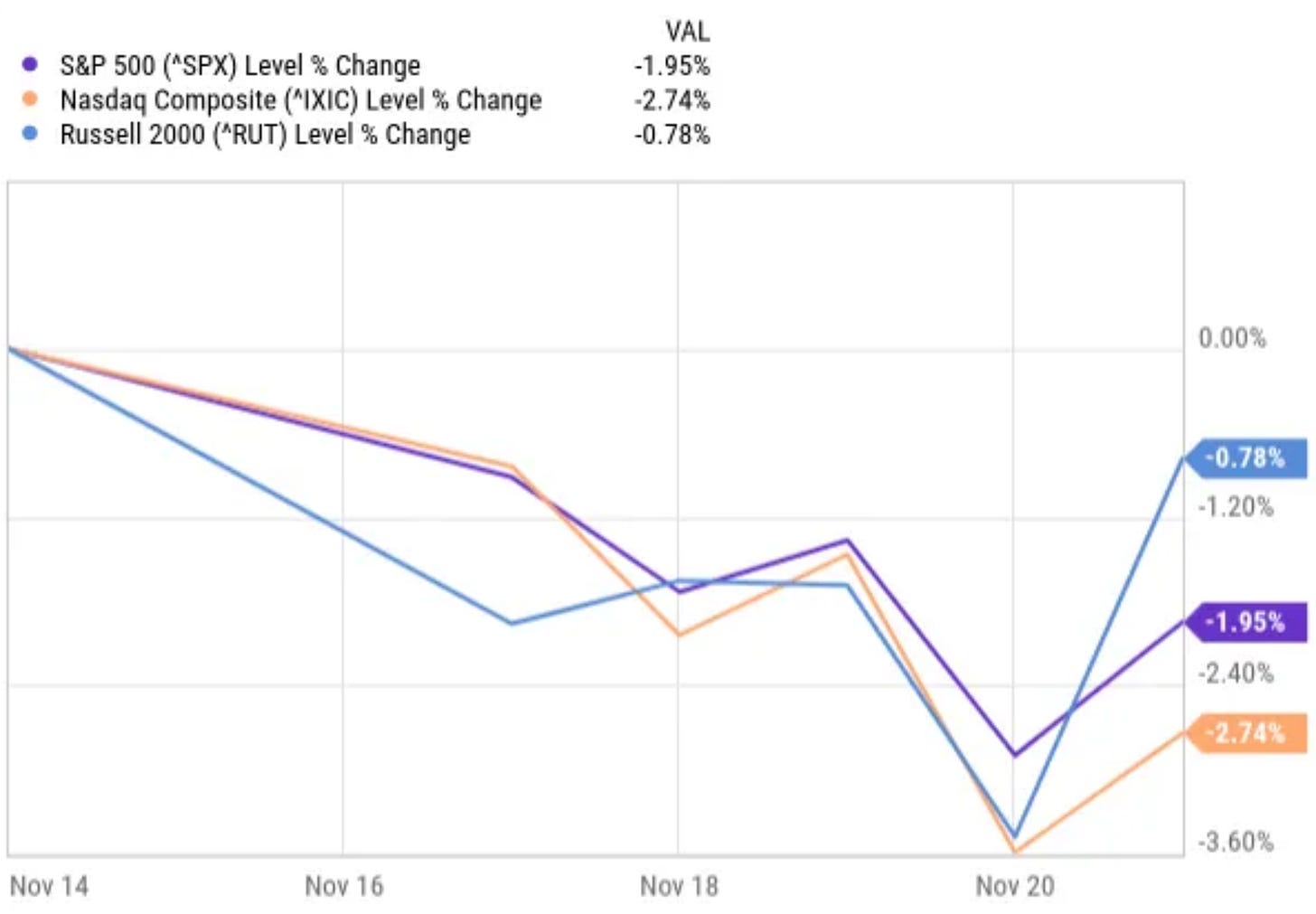 That was the case this week. The Russell 2000 was down 0.78% through a surprising comeback on Friday. The S&P 500 was down 1.95% and the Nasdaq 2.74%.