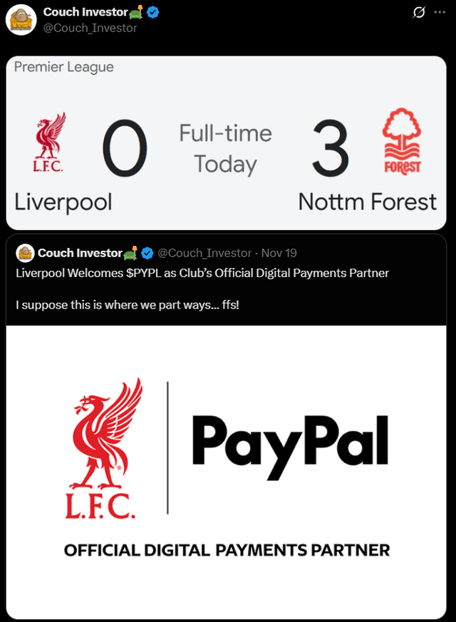 And PayPal can’t seem to stop losing. Now that it’s a Official Liverpool partner, that seems to extend to the club.