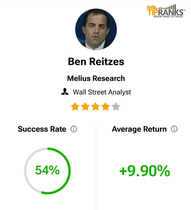 Ben Reitzes is a Managing Director and Head of Technology Research at Melius and has been in the industry for 25 years. That gives him some credibility. But for a technology guy, his track record is not that great. Tipranks follows the returns from analysts and bloggers after 1 year. I'm not a huge fan of this because it focuses on the short term (one year is short term for me) but it's all we have.