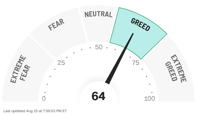 As a consequence, the Greed & Fear Index climbed from 59 to 64 and remained in Greed.