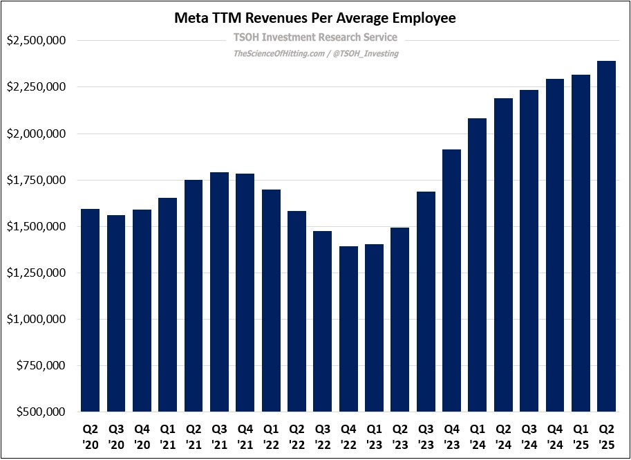 This is Meta's revenue per employee, for example. It's has nearly doubled in the last three years.