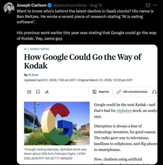Joseph Carlson, who has a popular YouTube channel where he brings quality content, wrote this on X this week: