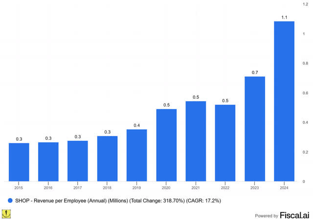 Shopify in 2025: Revenue expected to be $11.3B with... 8,100 employees.