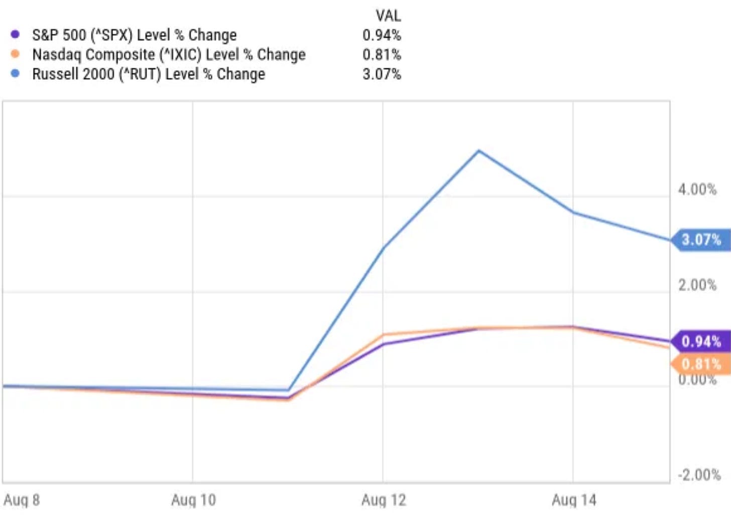 The Russell 2000 was up 3.07% this week, much more than the S&P 500, which was up 0.93%, and the Nasdaq, up 0.81%.