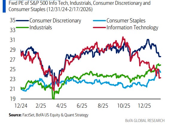 I know that many look down on “retail investors” (a term I hate because it’s so condescending). But is it so irrational to buy now that tech trades at a lower forward PE than industrials and consumer staples?