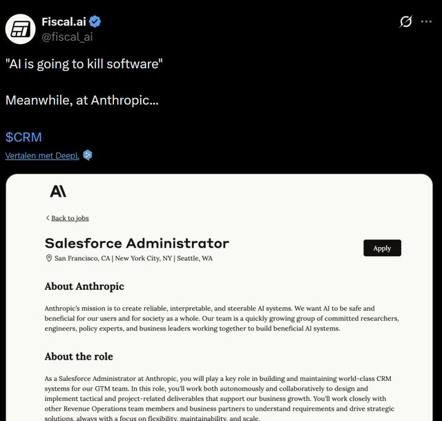 It also ties into what I’ve been writing about the anti-bubble. The narrative is so strong that AI will destroy everything that isn’t a chip or LLM, that money flows into hardware and out of everything else. This is a data point worth keeping in your head. When the crowd is on one side of the boat, it’s usually worth checking the other side.