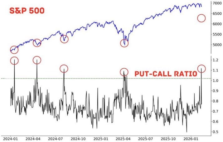 People are sharing it with scary captions about how the put-call ratio is spiking and therefore a big sell-off is coming.