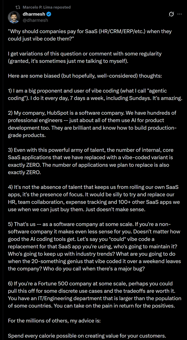 I want to end this with an interesting post of one of the companies I just named, HubSpot. The co-founder and CTO Dharmesh Shah, wrote this on X.