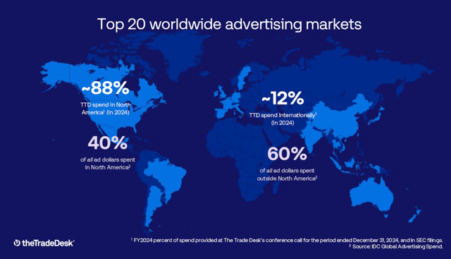 International growth continues outpacing North America, while it's still just 14% of The Trade Desk's revenue. Nearly 2/3 of ad spending is outside of the US, though, which shows what a long runway The Trade Desk still has.