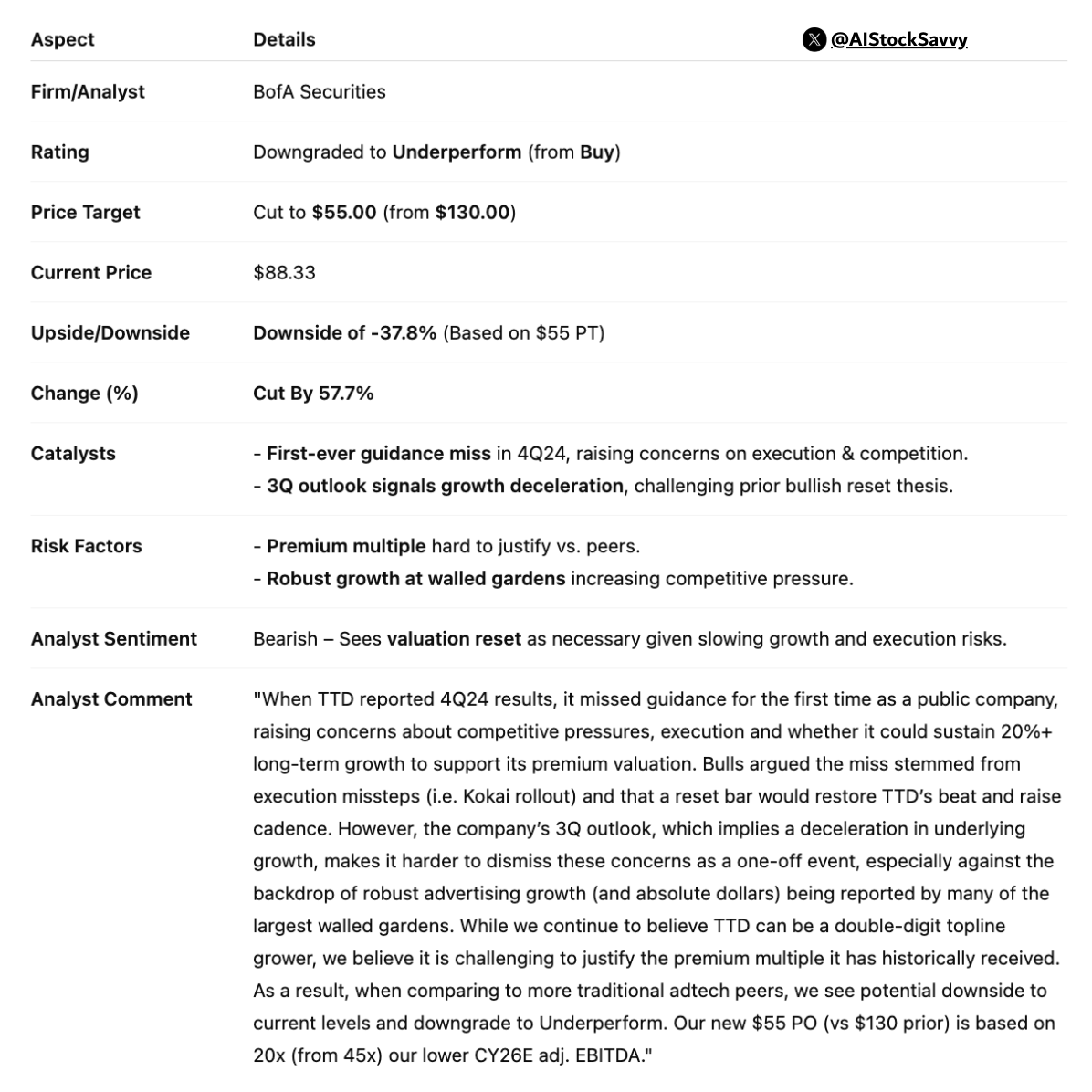 what are your thoughts exactly on AI putting pressure on TTD business. with less people actually browsing the internet since ChatGPT and other AI agents doing the work for them… that puts pressure on TTDs business with less advertisers using them due to low open network traffic. another thing… what about other Ad giants like GOOG AMZN META all crushing it but TTD struggling?