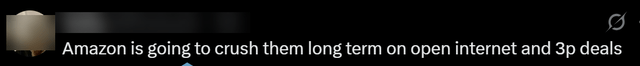 In my opinion, and to me, all the data suggests that we're right on this, despite their mixed messages, they are not trying to buy the open Internet objectively. They can't. They have way too much Prime Video supply to sell to ever honestly pitch large brands to objectively buy the open Internet. They push sponsored listings most and Prime Video after that. Neither of those compete with us, which is why I say that we're not really trying to compete with Amazon. When they argue that their DSP, which is not even their top advertising priority, let alone the core of their business, when they argue that, that's objective to the biggest advertisers in the world, I believe they weaken the rest of their advertising pitch, and they weaken the strength of their AWS pitch.