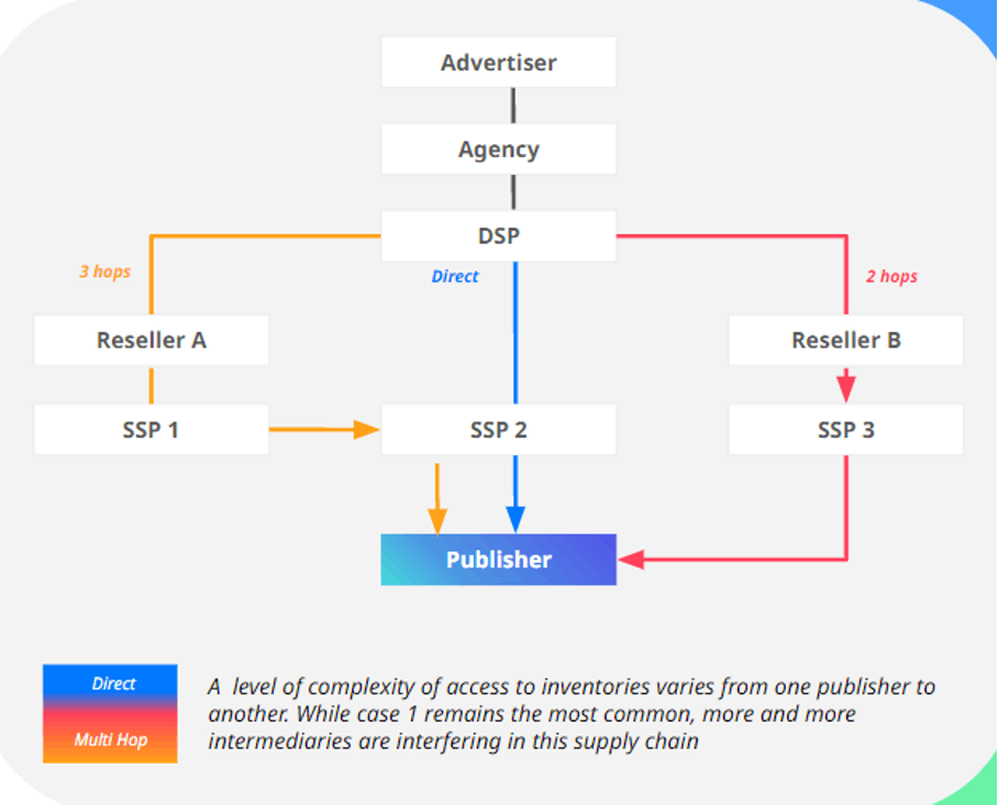 The digital advertising supply chain is the complex path an ad takes from the advertiser to the consumer. Often, there are multiple opaque intermediaries.