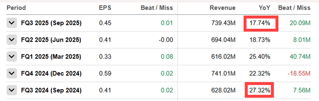 It doesn’t look great. Last year in Q3, there was 27.32% growth. Now just 17.74%.