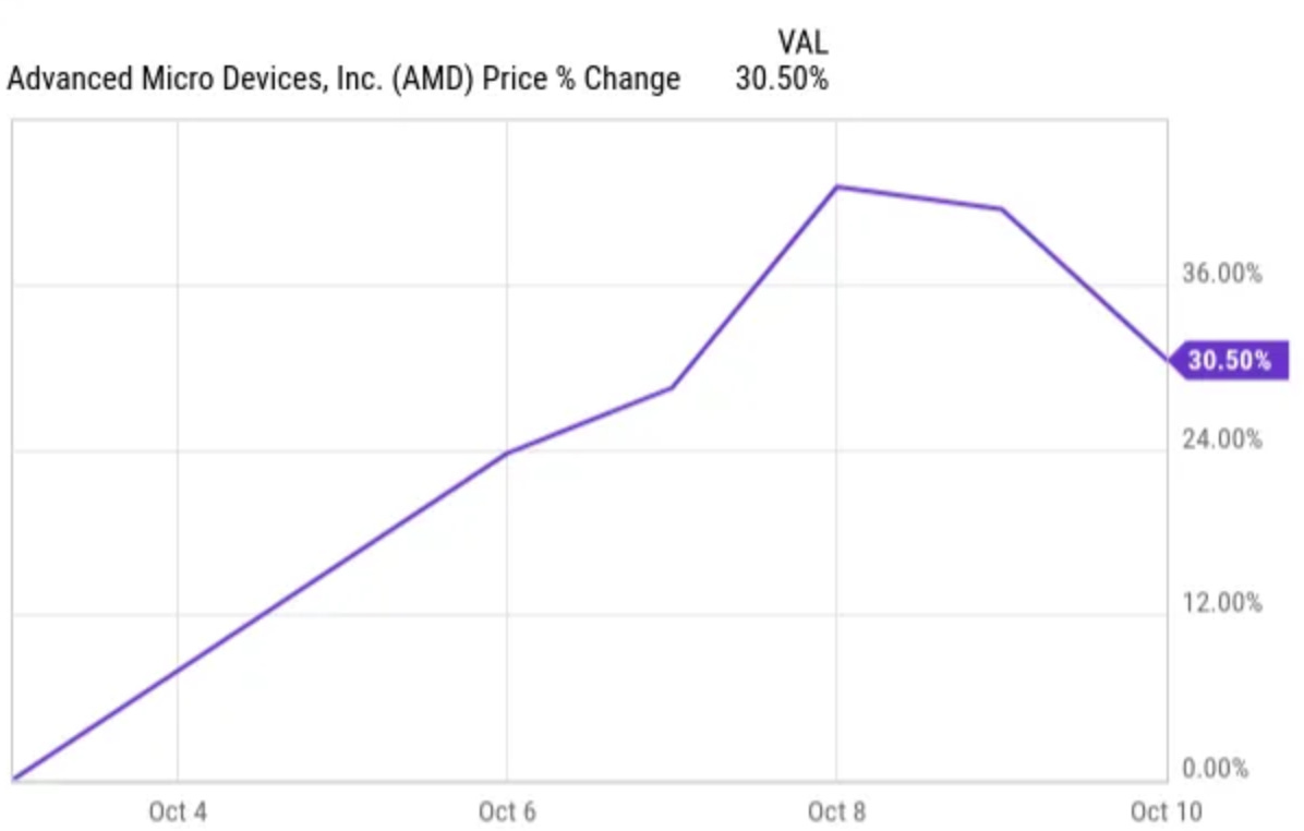 But instead of paying cash, OpenAI is getting up to 160 million AMD shares—roughly 10% of the company through warrants that vest as AMD delivers the chips. AMD’s stock price jumped by more than 30%.