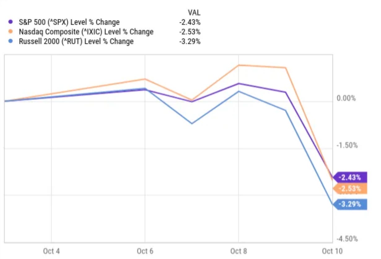 Tariffs took the headline again this week, and that resulted in big drops. The S&P 500 was down 2.43%, the Nasdaq 2.53% and the Russell 2000 even 3.29%.