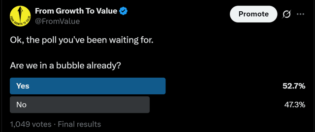 As you can see, the opinions are split, but a majority of 52.7% thinks we are in a bubble. Now, don’t take this too seriously. As I showed above, the typical investor is often wrong.