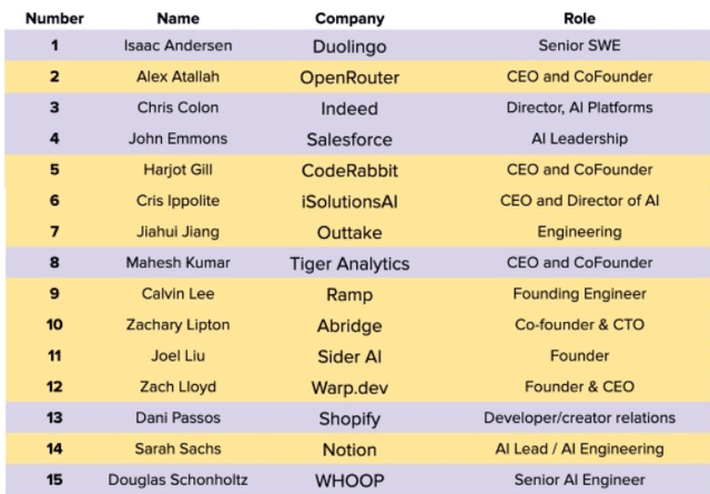I saw this top 30 of customers who have used more than 1 trillion OpenAI tokens. The list is alphabetically ranked, not by usage. There’s one mistake: Mahesh Kumar (#7) is from Uber, not Tiger Analytics.