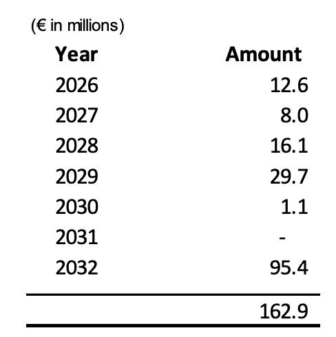 I also want to highlight the maturity structure: the non-current term loans of €347.2 million don’t come due until at least 2032.