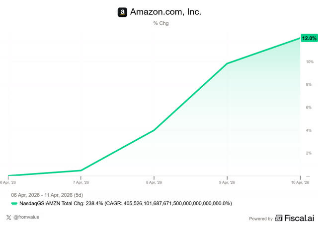 The market assigns zero value to Amazon’s chip business because it’s buried within AWS. And yet it’s potentially a $50 billion standalone operation. That’s bigger than 82% of the Fortune 500.