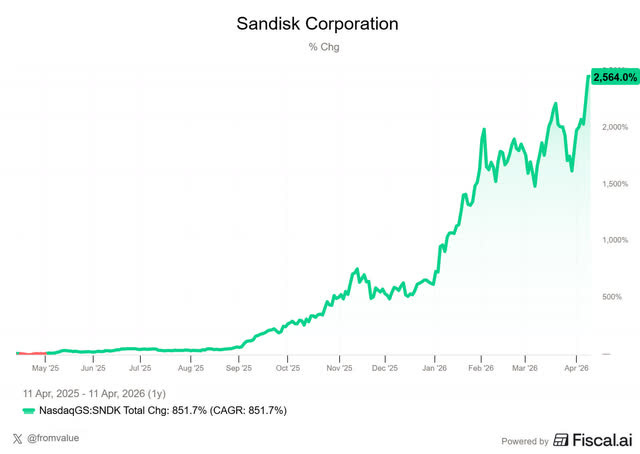 But being removed from the index is not always as negative as it sounds. Sometimes those stocks have already had a big drop and the removal sometimes marks the bottom. On the contrary, the stocks that come in have often had a big recent jump, and that goes for Sandisk too. It’s up more than 25x over the last year.