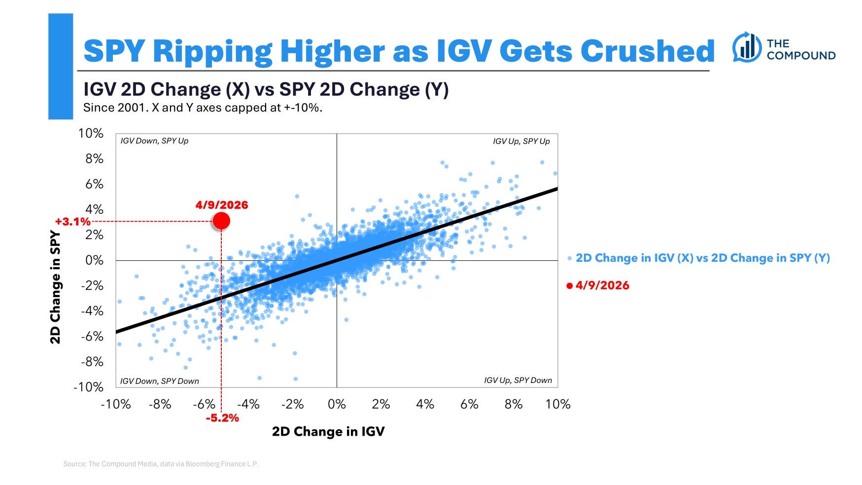 This is about Wednesday and Thursday. The S&P 500 was never up this much with software down this much. This already shows you again that the movements are extreme.